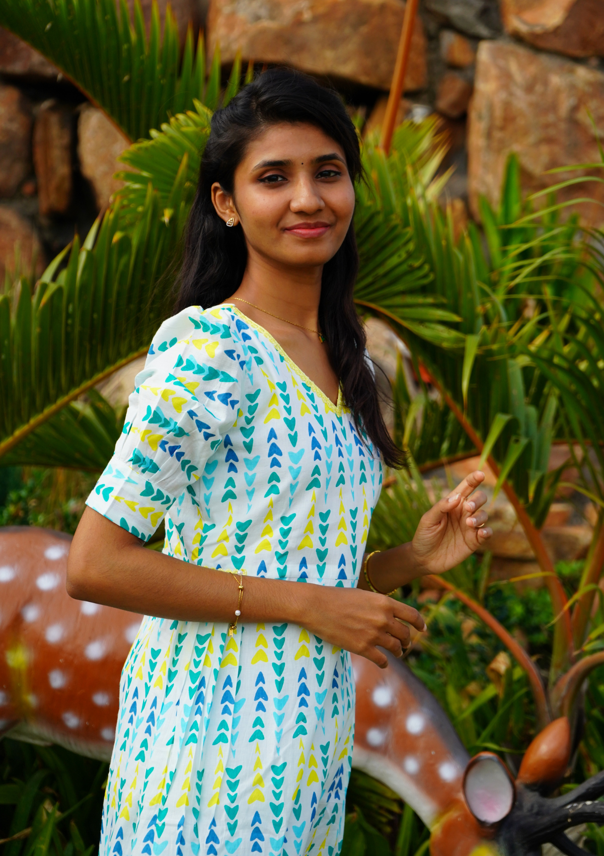 ๐จ Colour: White base with aqua blue & sunshine yellow prints