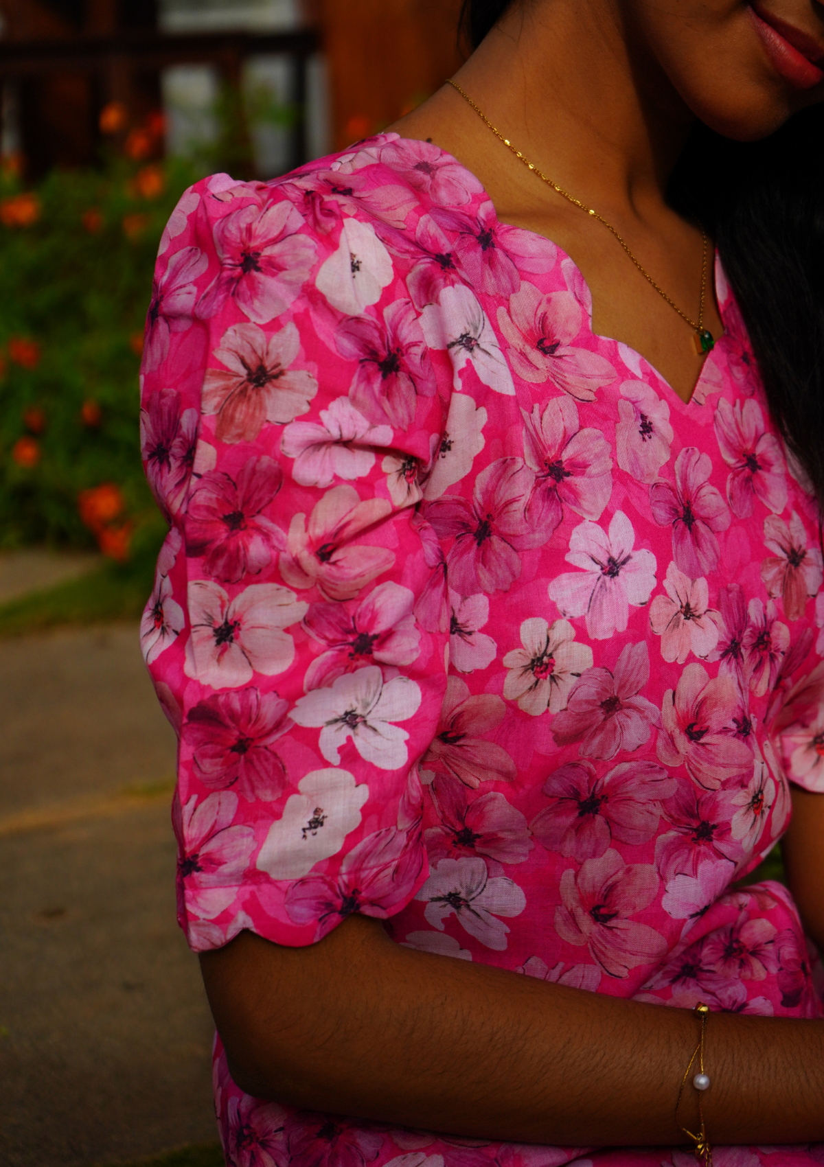 🎨 Colour: Vibrant Pink with delicate White Floral Prints