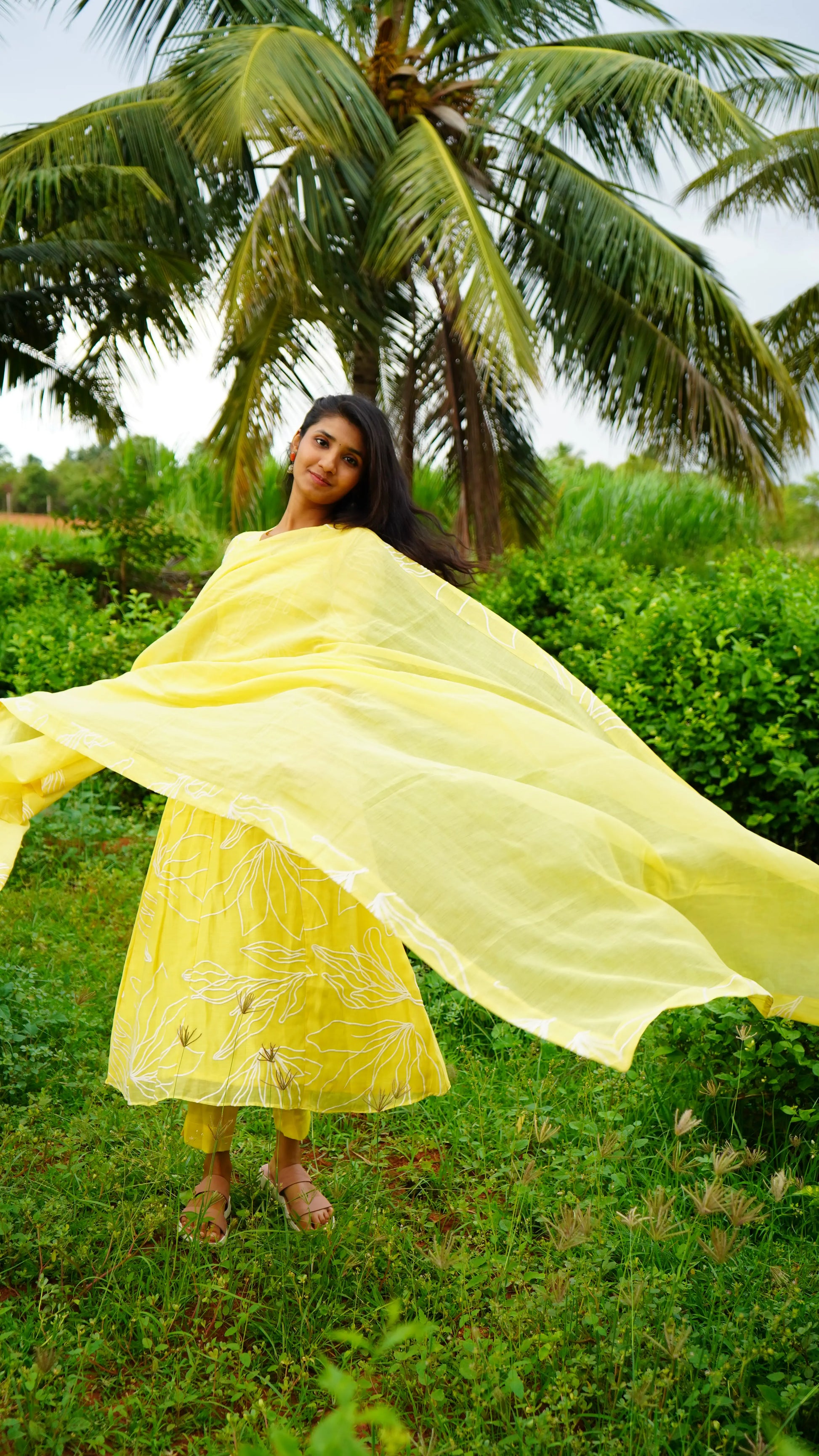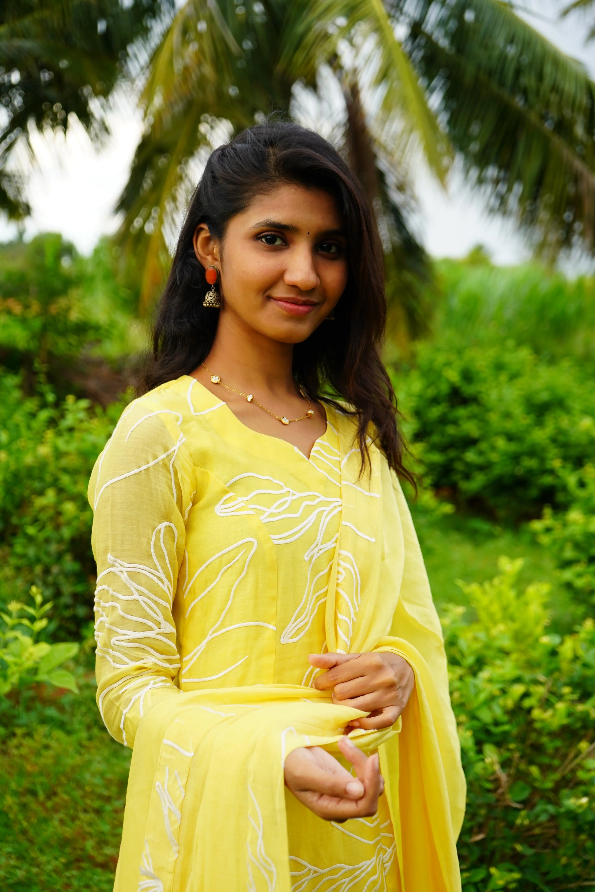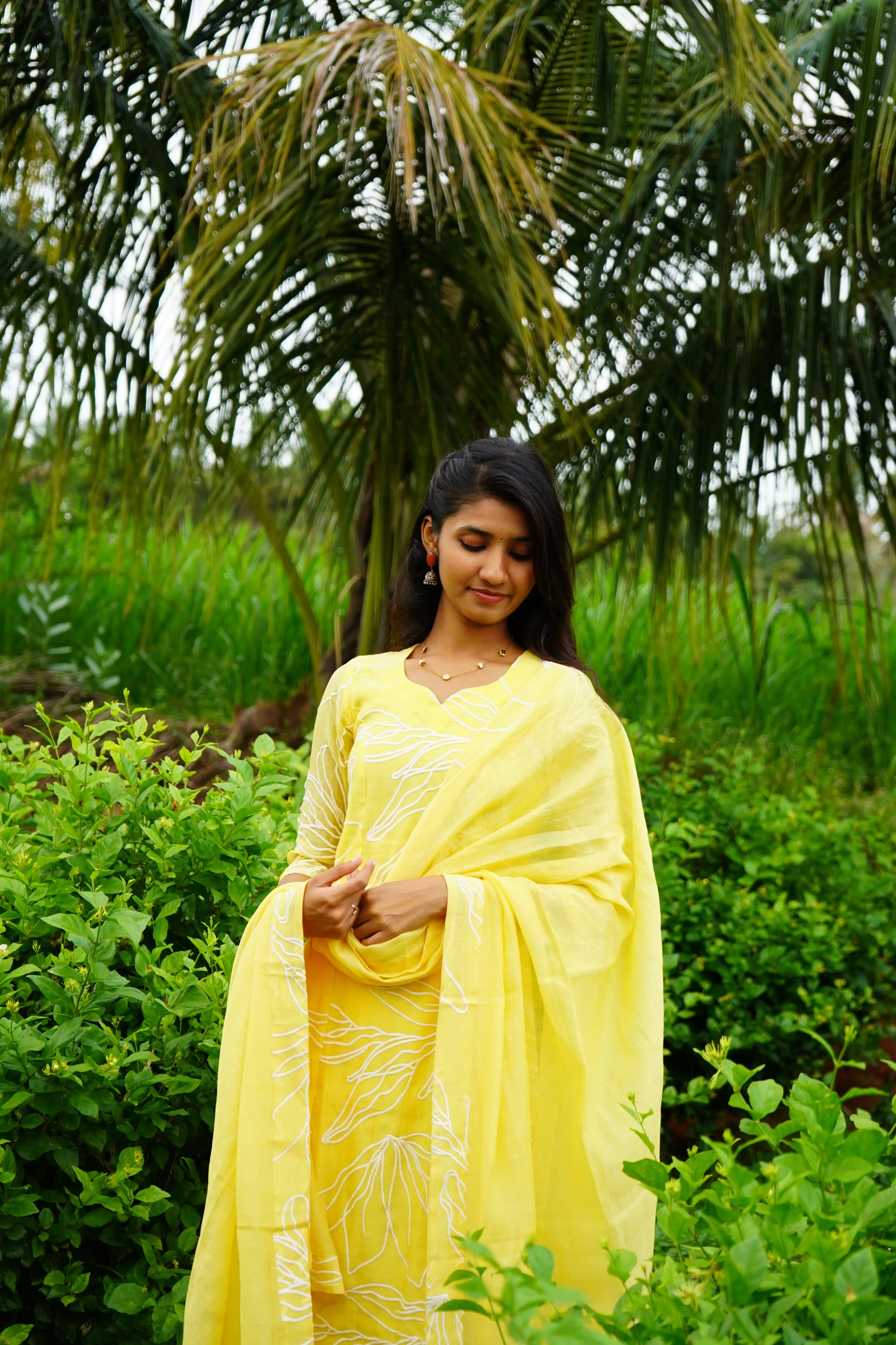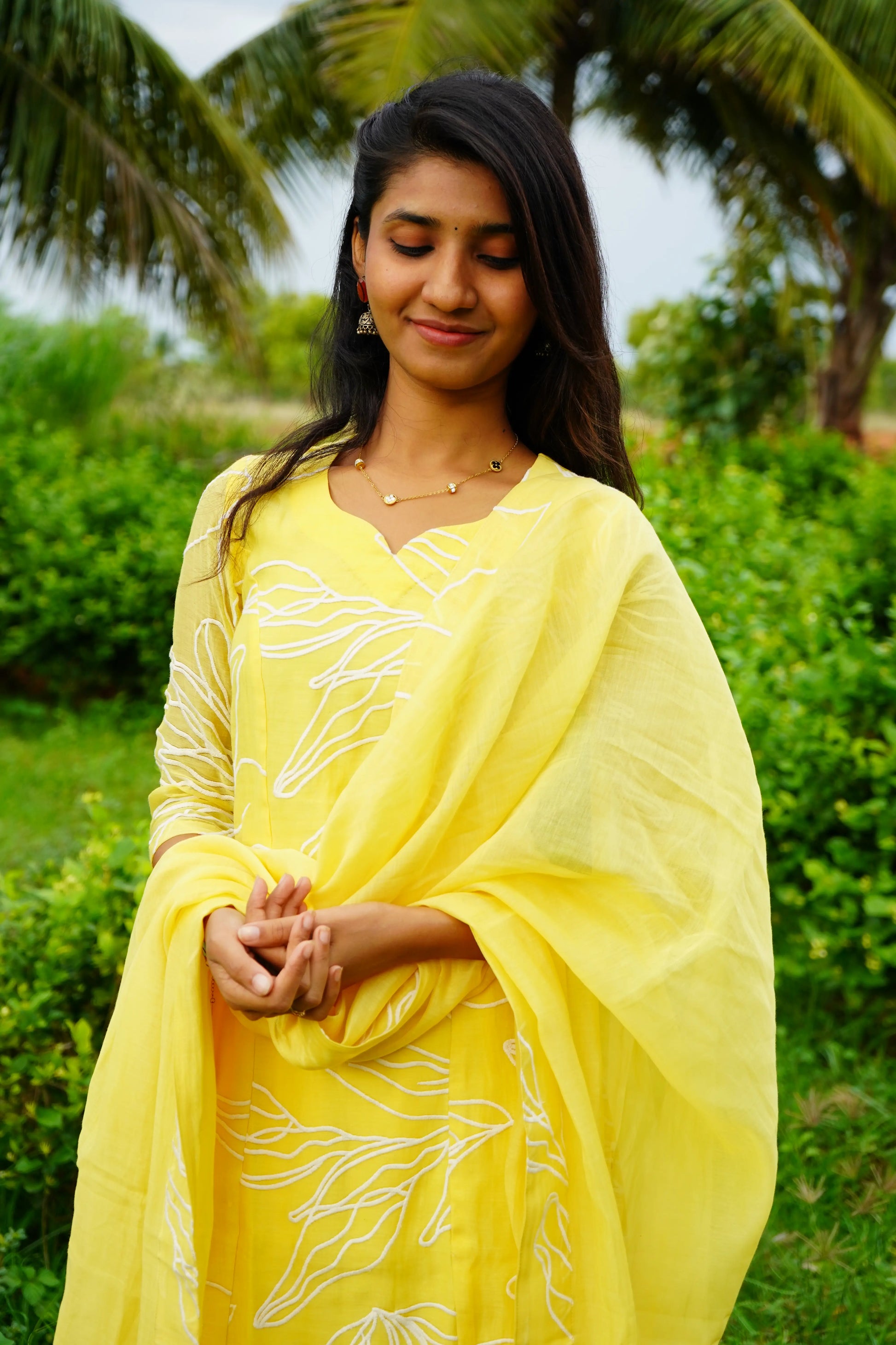 LEMON-YELLOW Applique MUl CHANDERI Aline Salwar suits