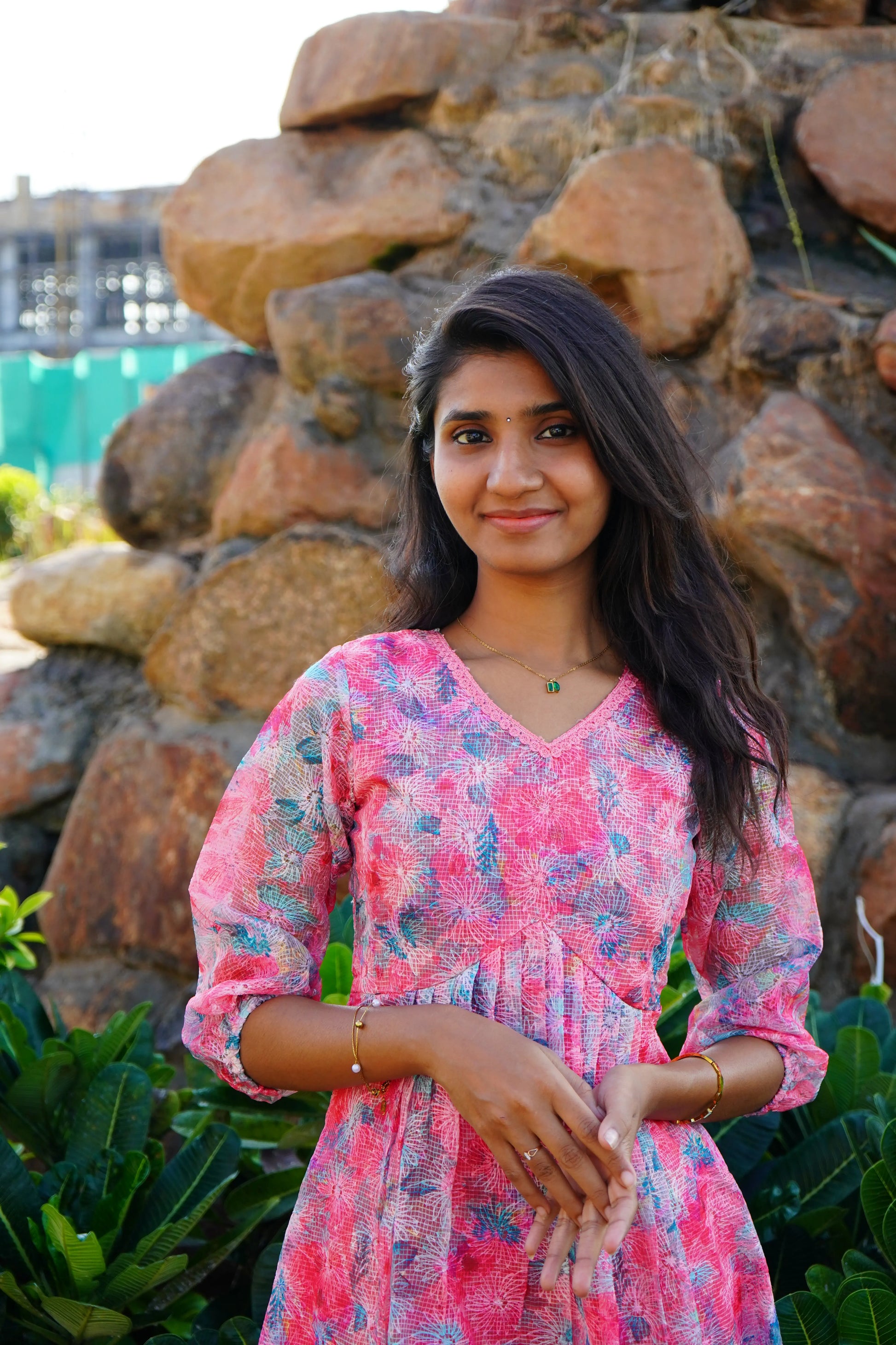 Pink Floral Aline Frock